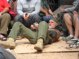 After the group picture we went over to the barn where Dude gave a class on "Caching". He started off by asking us what's the one item people forget when they're caching. It's a shovel to dig up the cache! He said to hide the shovel but put it where critters won't eat the wood.